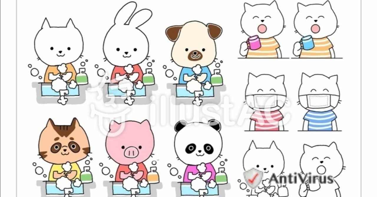 手洗いと除菌をする動物のイラスト 無料イラスト素材 素材ラボ